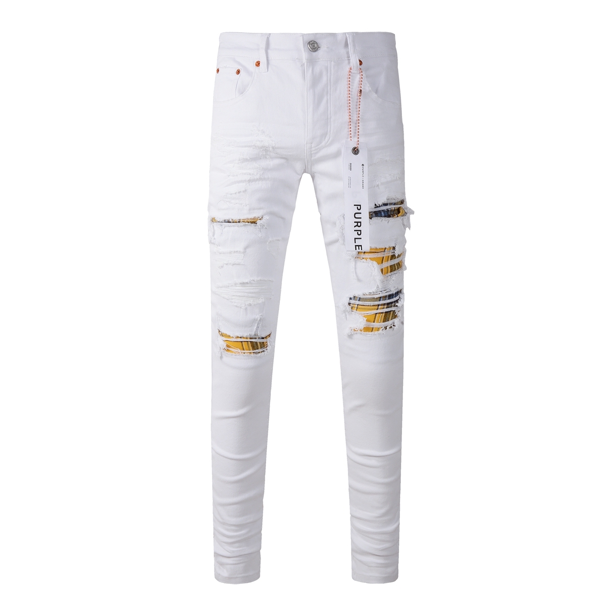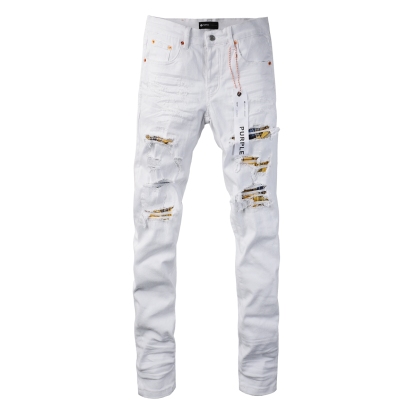 Purple Jeans white ripped patch skinny jeans