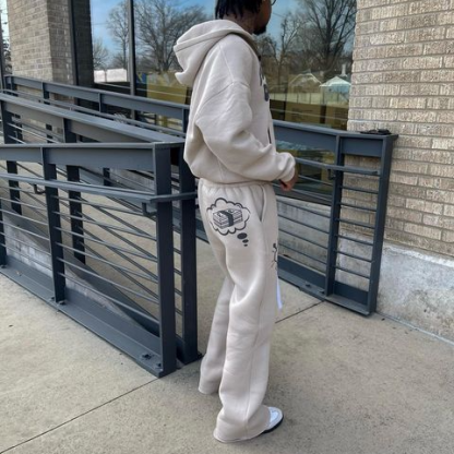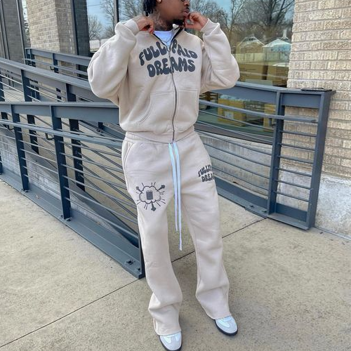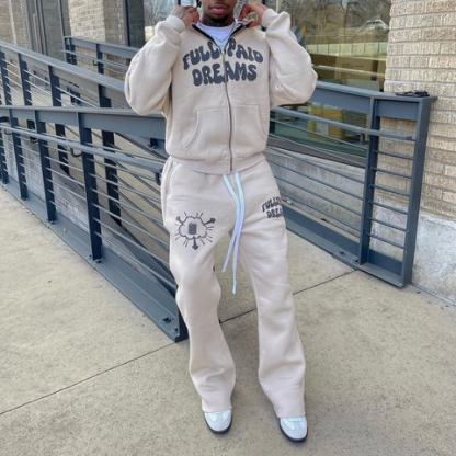 Retro Casual Letter Print Zipper Sweatshirt Set