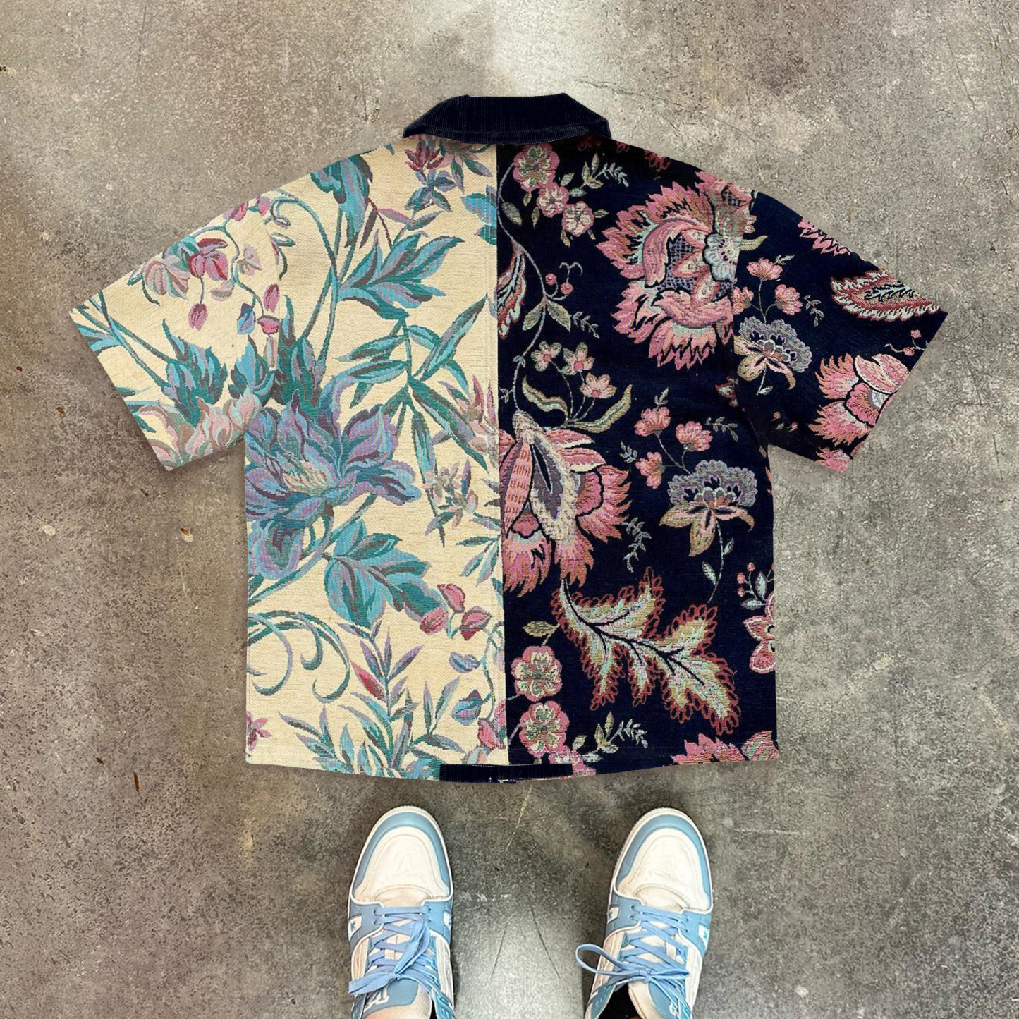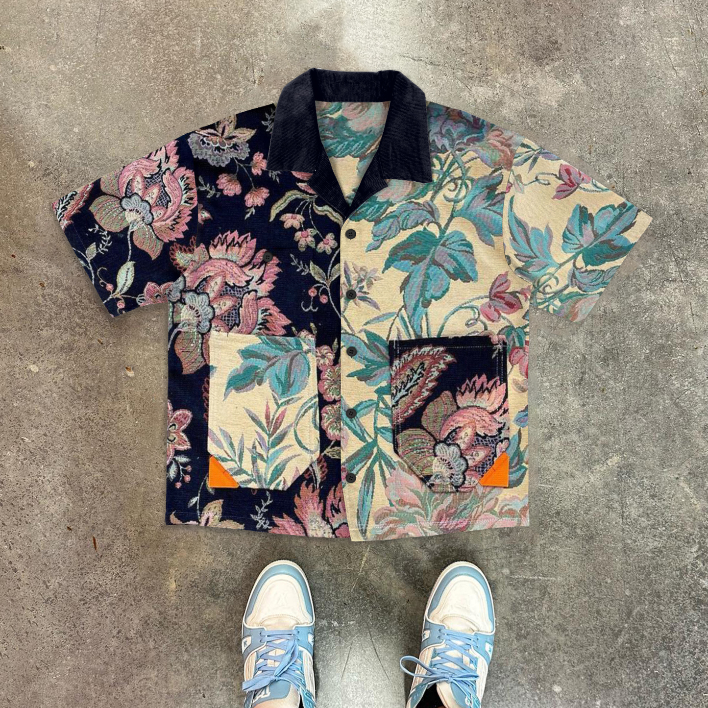Retro Floral Contrast Short Sleeve Shirt