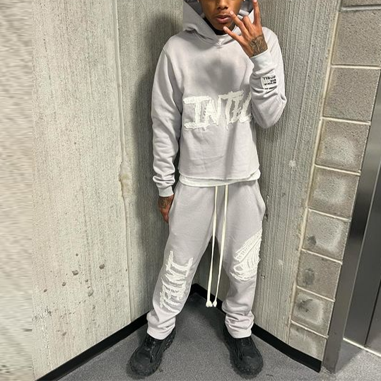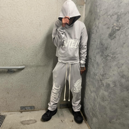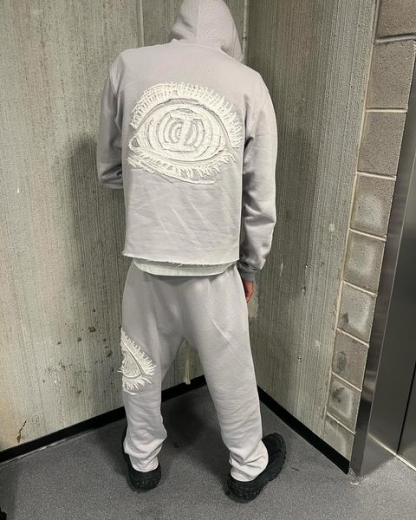Retro Personalized Eye Patch Embroidered Sweatshirt Hoodie Set