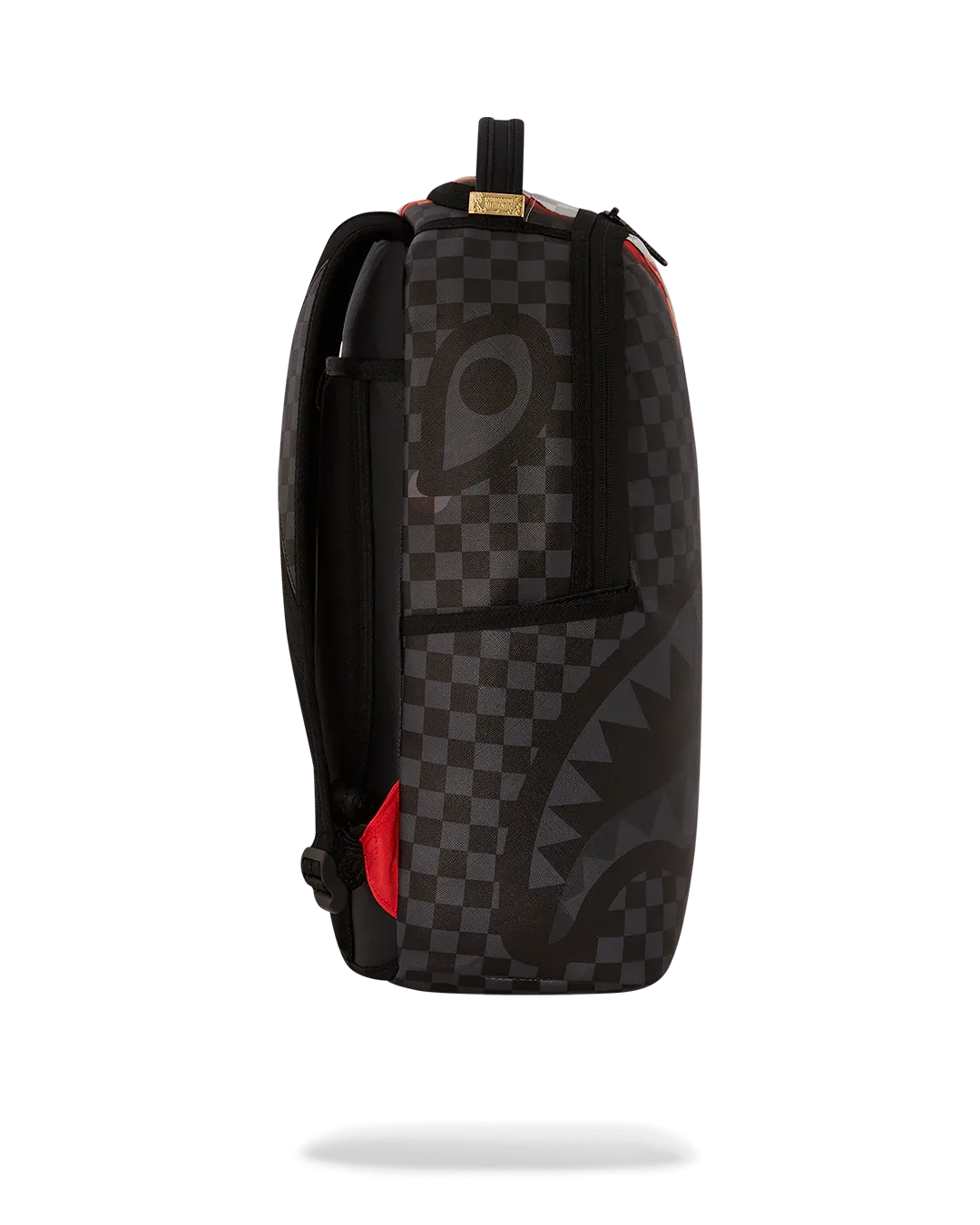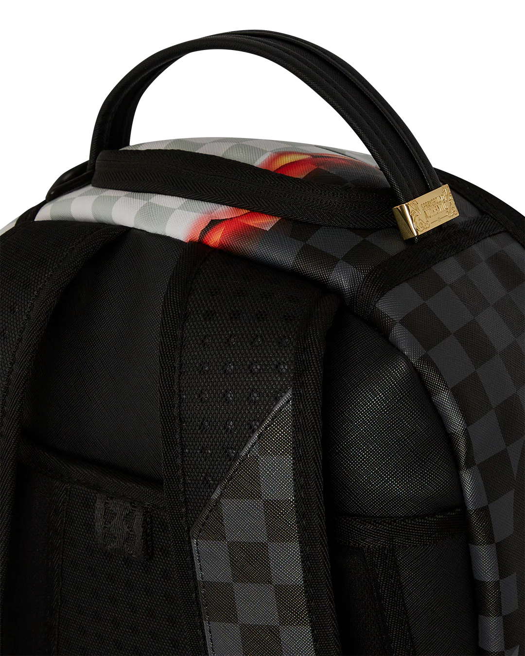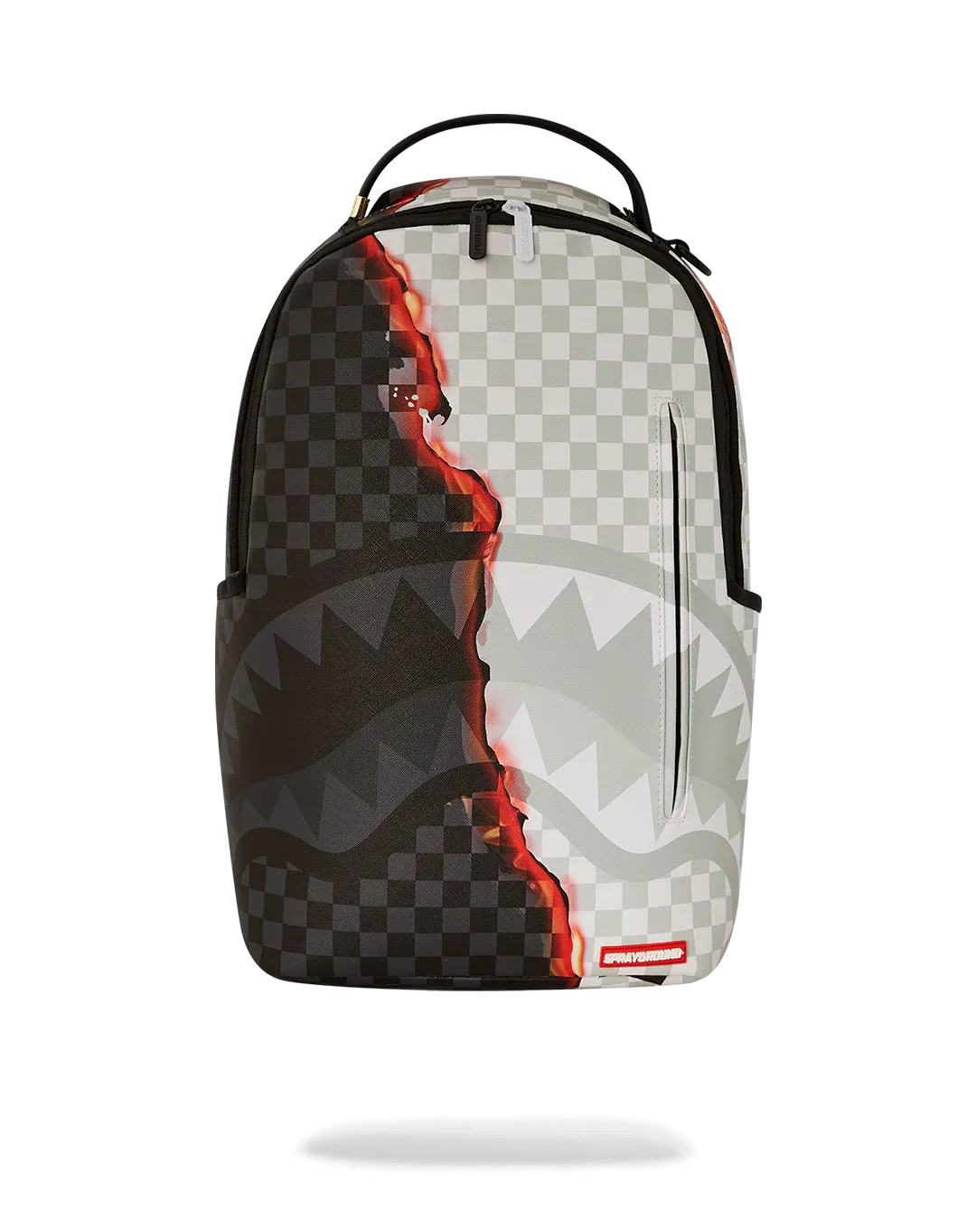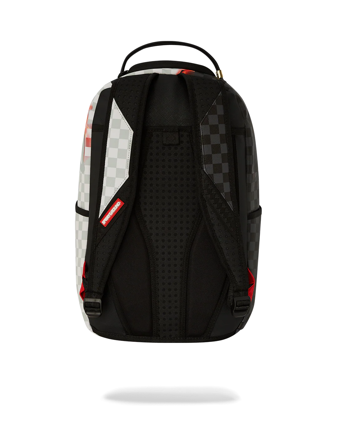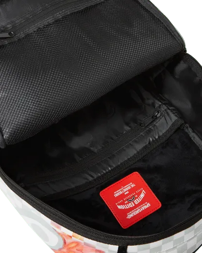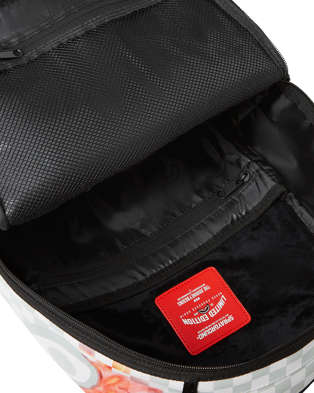Dimensions: 18" x 6" x 11.5" • Front zipper pocket • Side pockets • Zippered Stash pocket • Separate velour sunglass compartment • Ergonomic mesh back padding • Adjustable Straps for custom sizing • Gold zippers with metal hardware • Metal "Sprayground Authentic" badge • Slide through back sleeve connects to carry-on luggage to free your hands