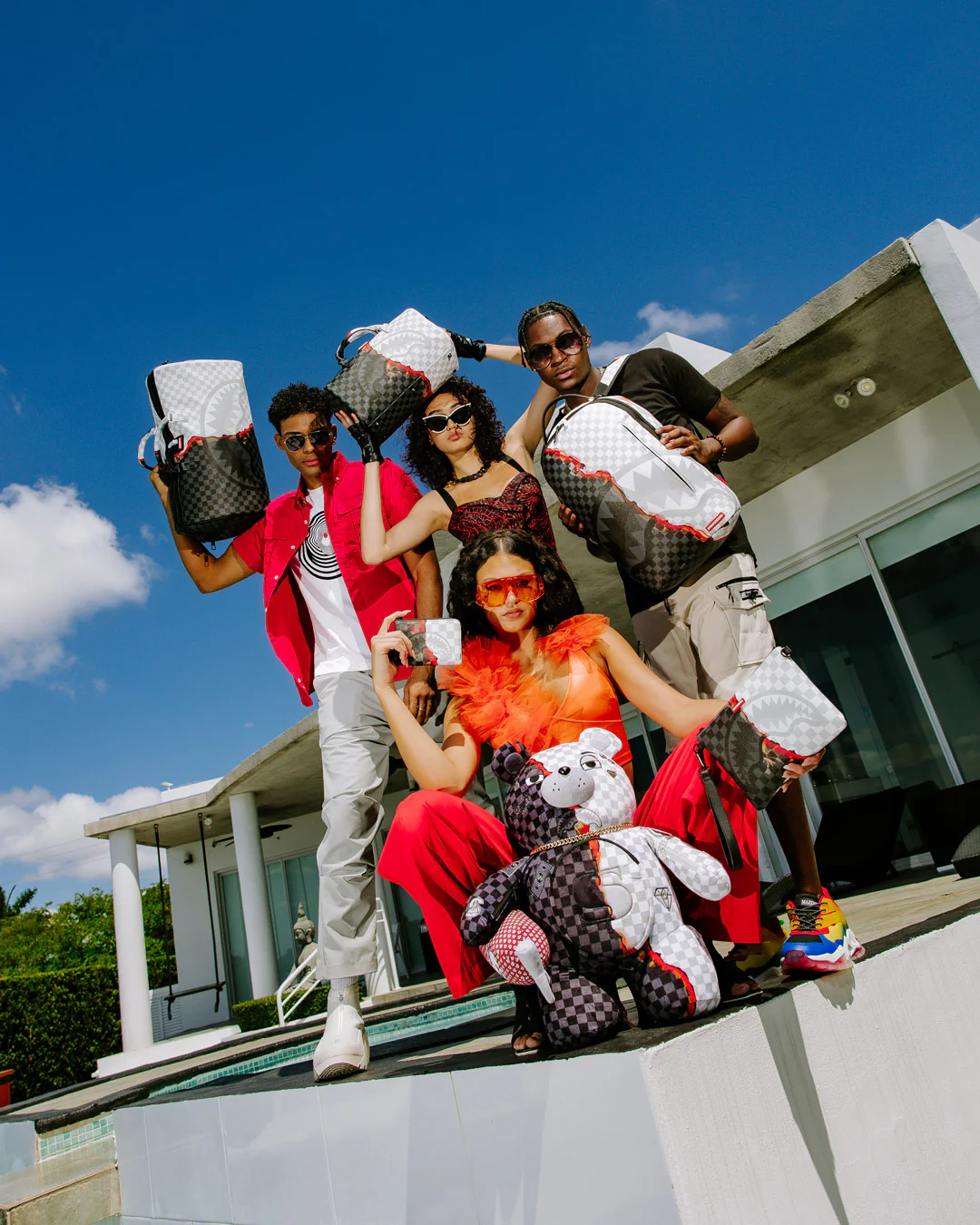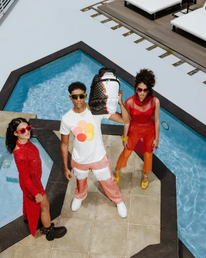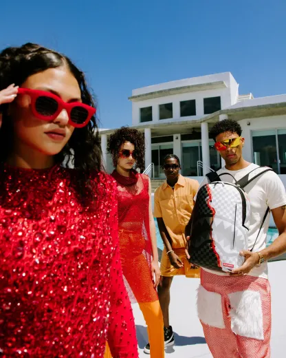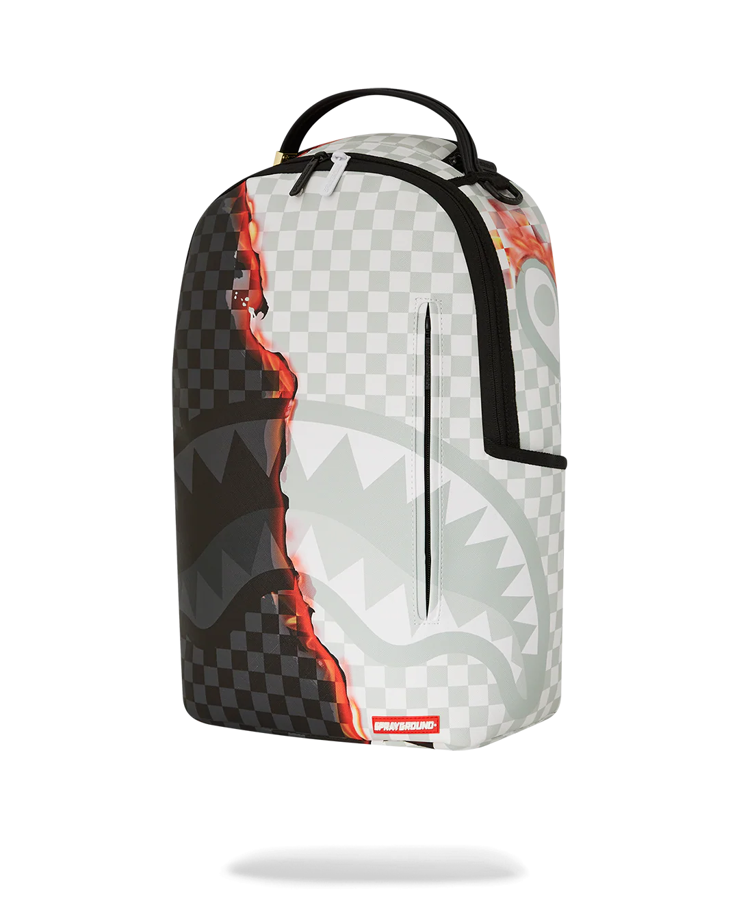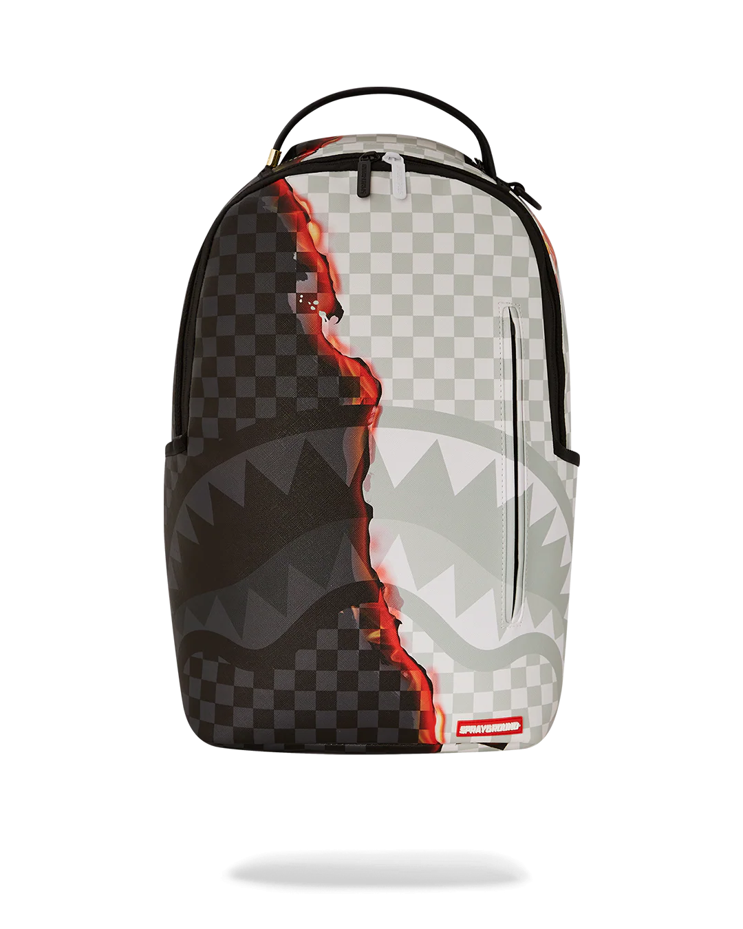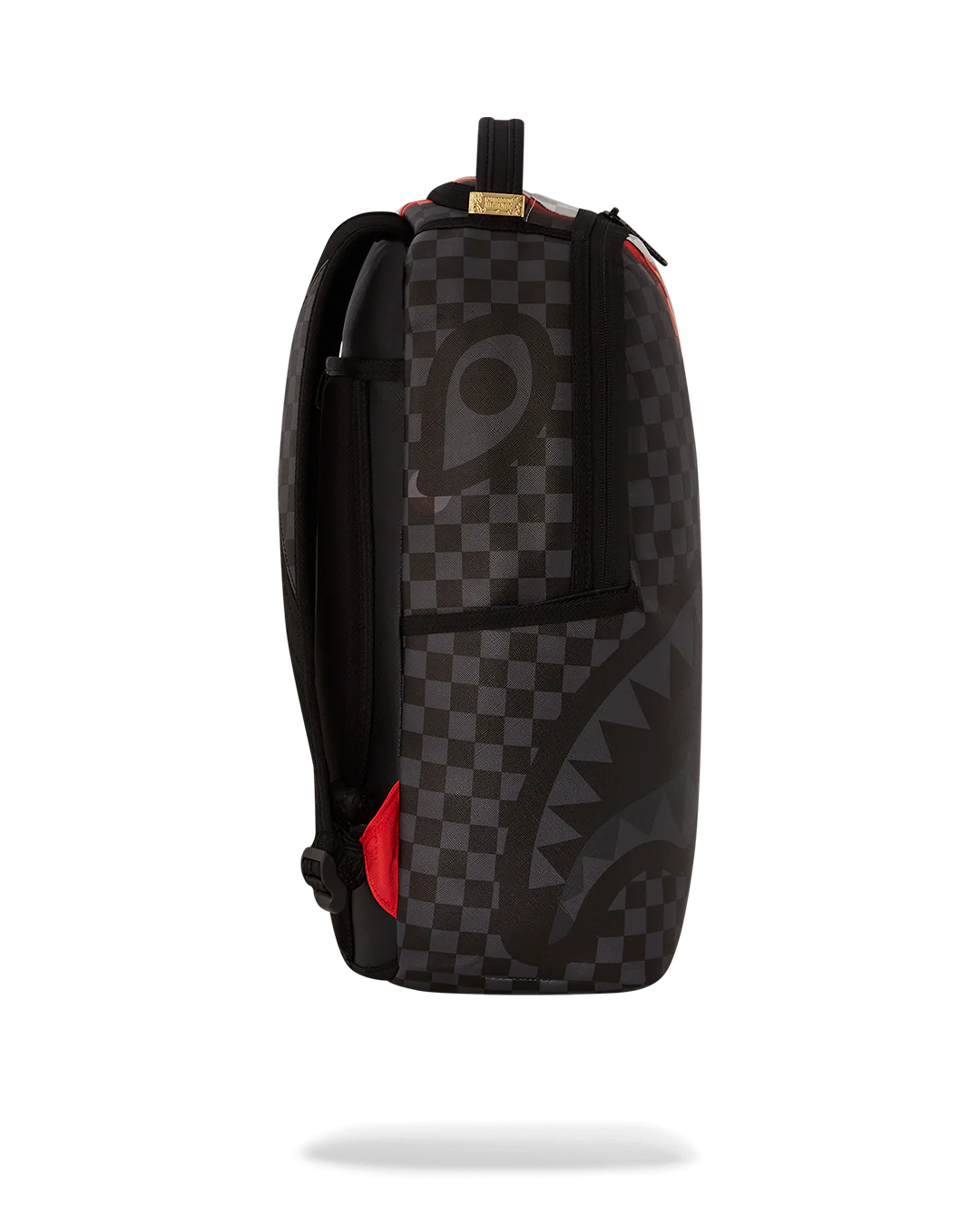 Dimensions: 18" x 6" x 11.5" • Front zipper pocket • Side pockets • Zippered Stash pocket • Separate velour sunglass compartment • Ergonomic mesh back padding • Adjustable Straps for custom sizing • Gold zippers with metal hardware • Metal "Sprayground Authentic" badge • Slide through back sleeve connects to carry-on luggage to free your hands