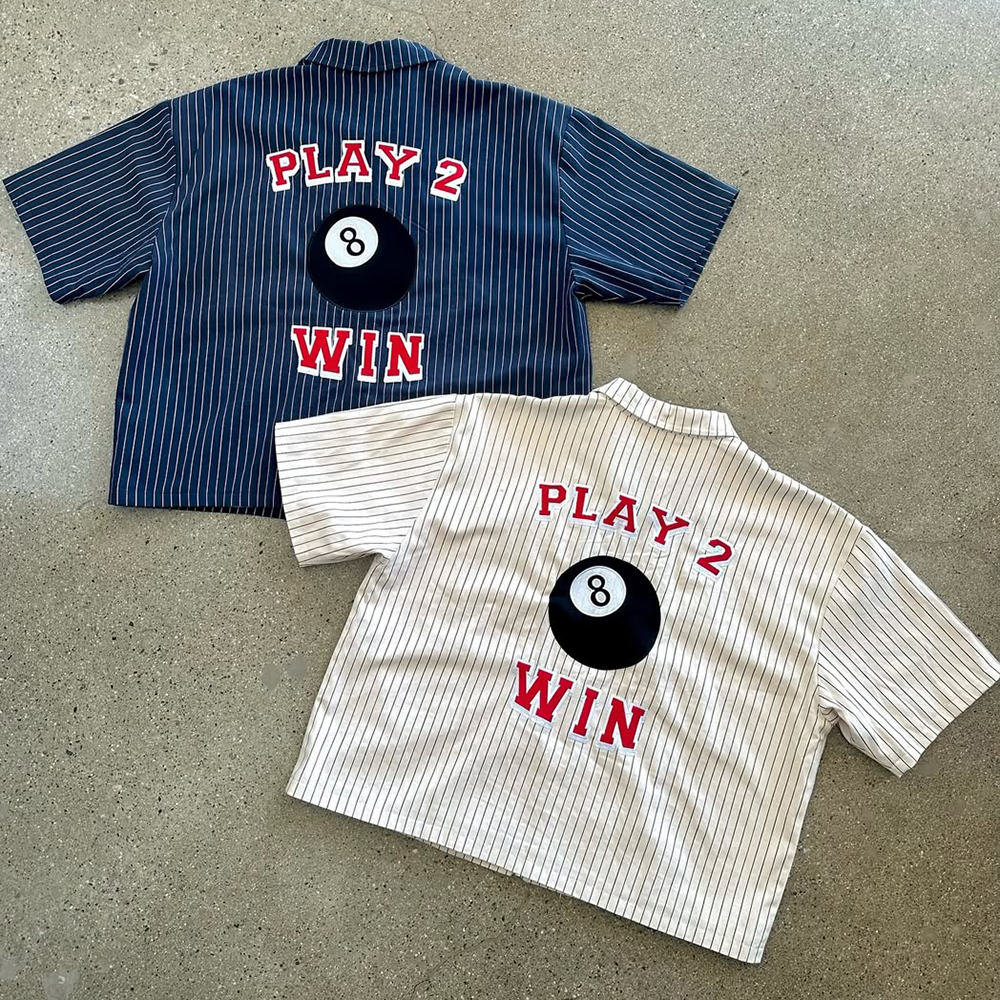 Striped Billiards Print Button Short Sleeve Shirt