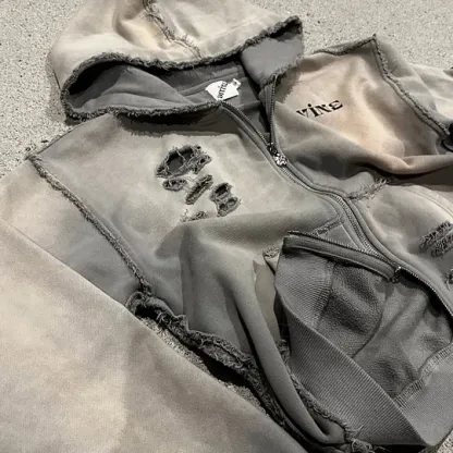 washed double zipper zipup