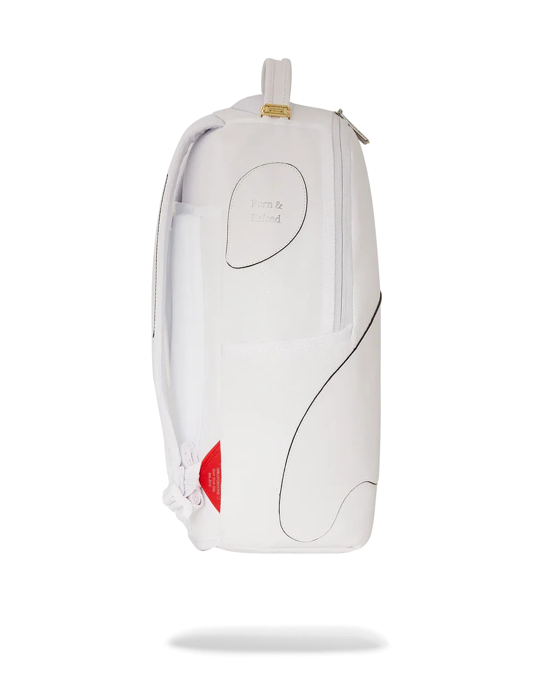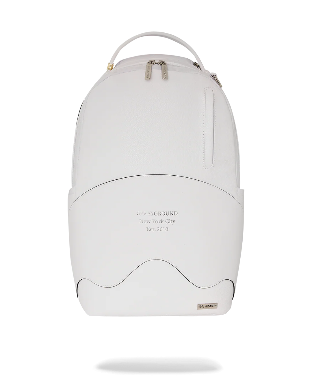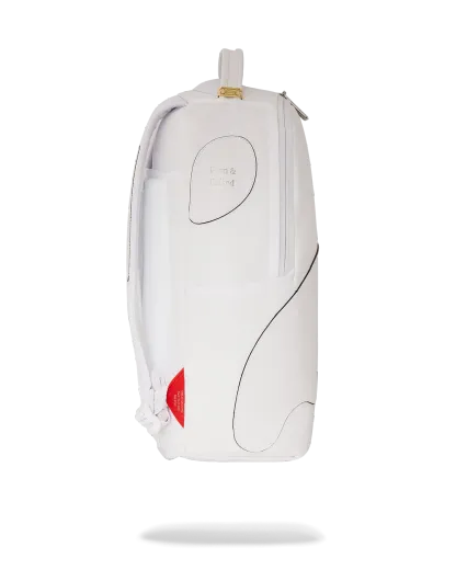 Dimensions: 18" x 6" x 11.5" • Front zipper pocket • Side pockets • Zippered Stash pocket • Separate velour sunglass compartment • Ergonomic mesh back padding • Adjustable Straps for custom sizing • Gold zippers with metal hardware • Metal "Sprayground Authentic" badge • Slide through back sleeve connects to carry-on luggage to free your hands