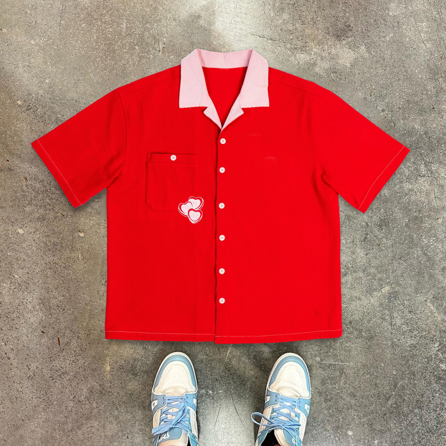 Valentine's Day Casual Loose Lapel Contrast Shirt