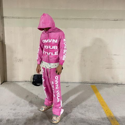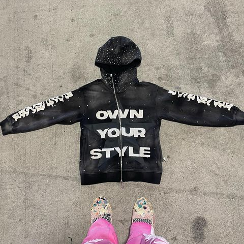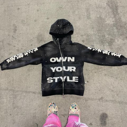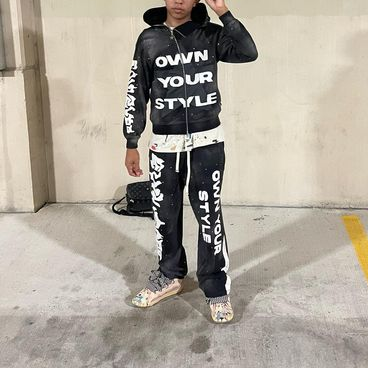 Vintage Lettering Zipper Sweatshirt Set