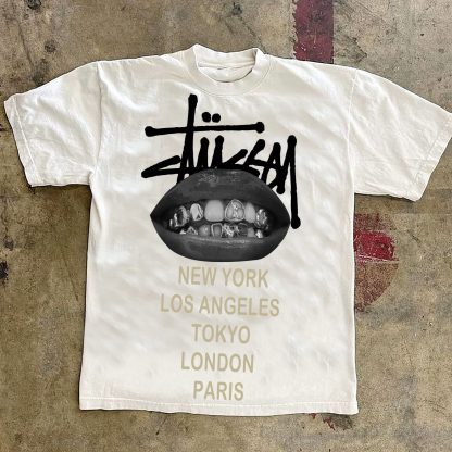 Words Lip Letters Print Short Sleeve T-shirt